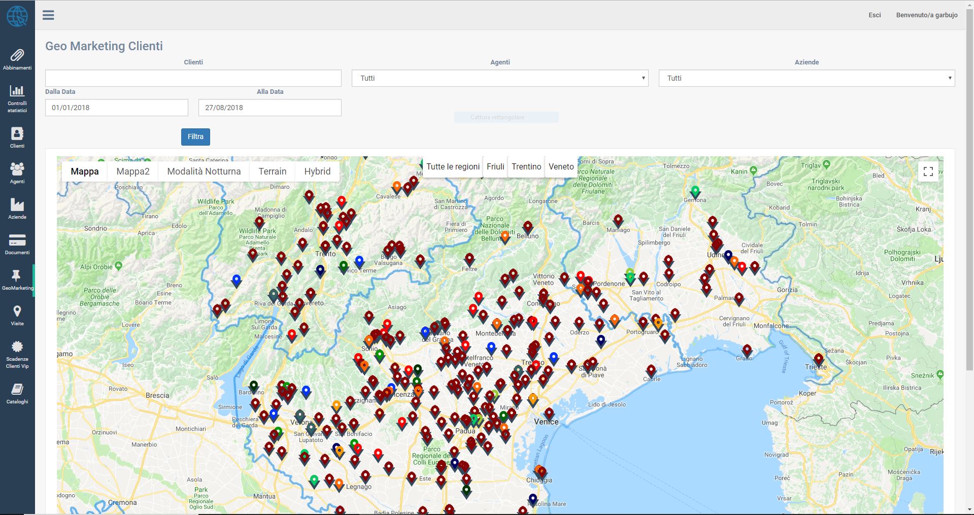 L’analisi dei nostri agenti sul territorio è arricchita dall’elaborazione di dati creati da un gestionale e un’App in nostra esclusiva, consentendoci di avere report di andamento dei fatturati, delle tendenze, delle richieste e di monitorare costantemente l’andamento commerciale.
